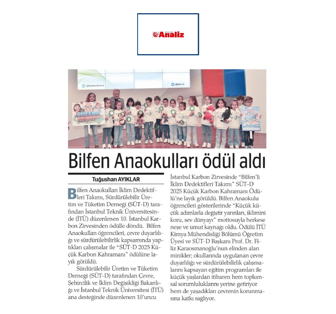 Bilfen Anaokulları İklim Dedektifleri Takımı, Ödülün Sahibi Oldu
