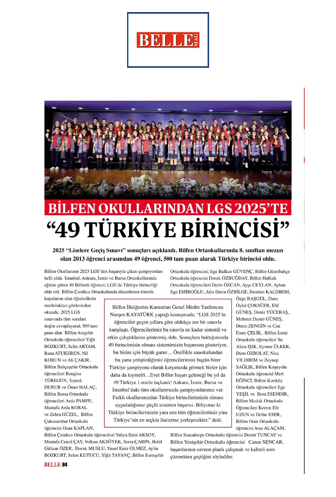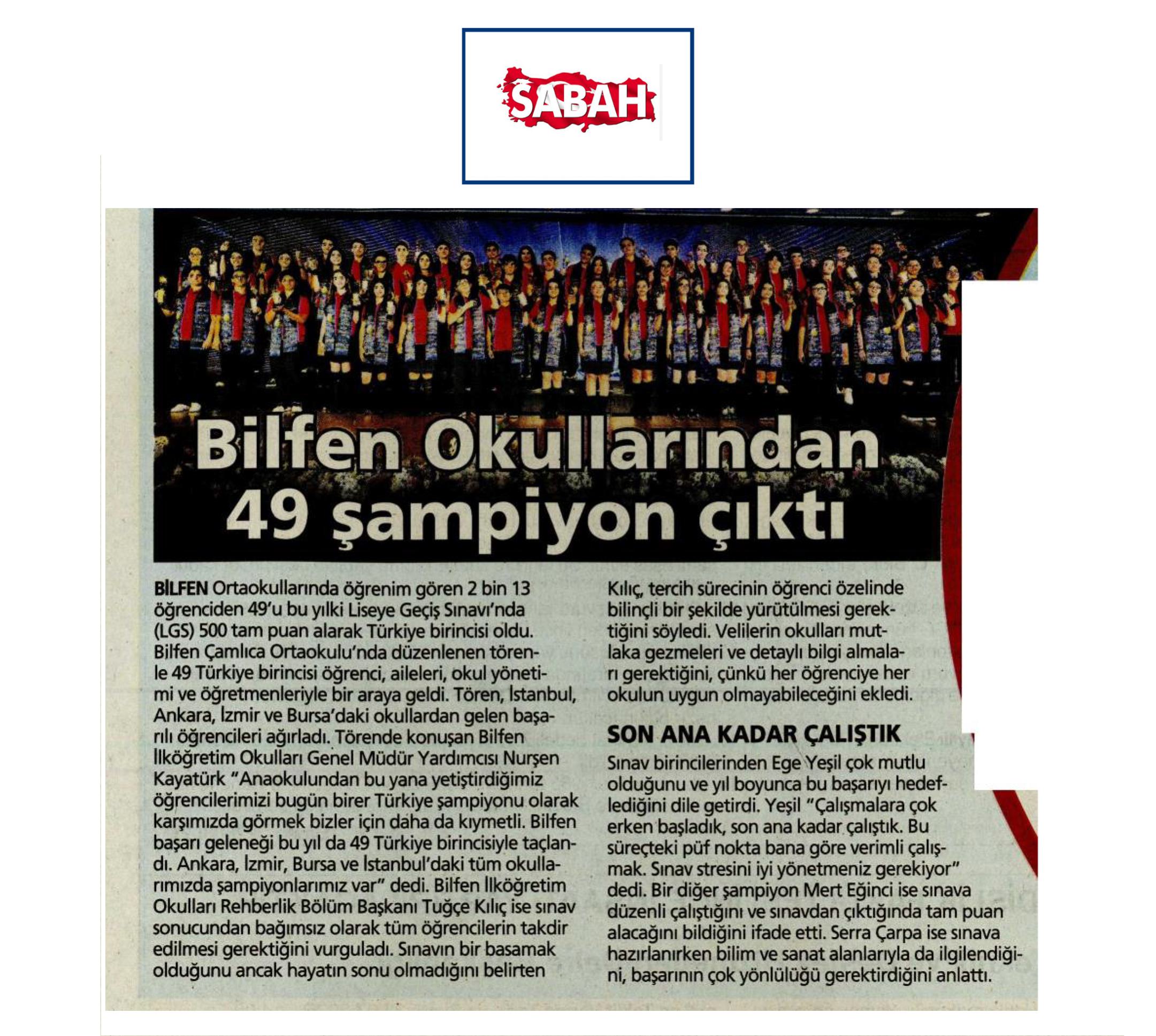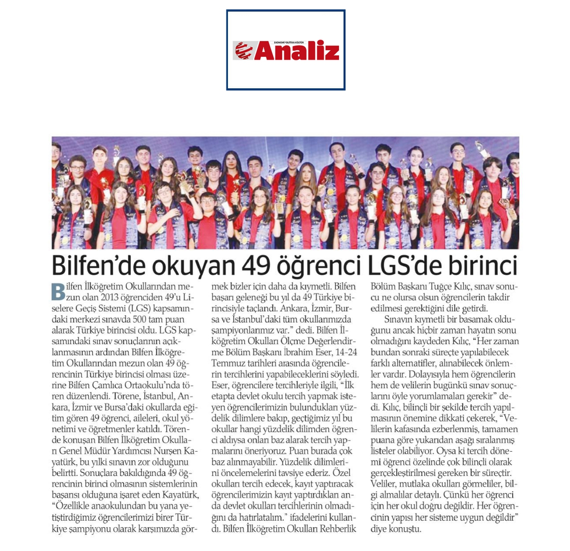 Bilfen Okullarından LGS 2025'te 49 Türkiye Birincisi