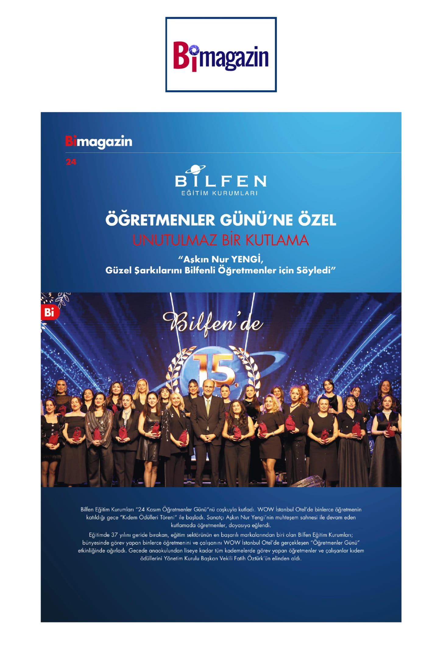 Bilfen Eğitim Kurumlarında Murat Boz ile 24 Kasım Kutlaması