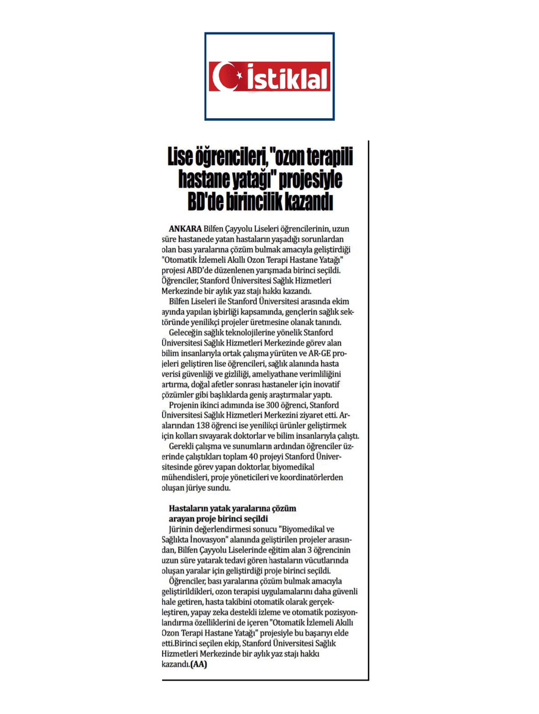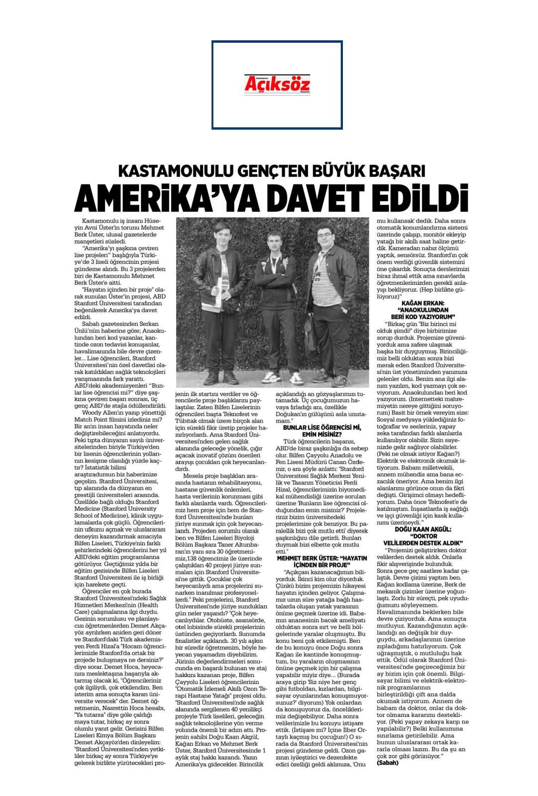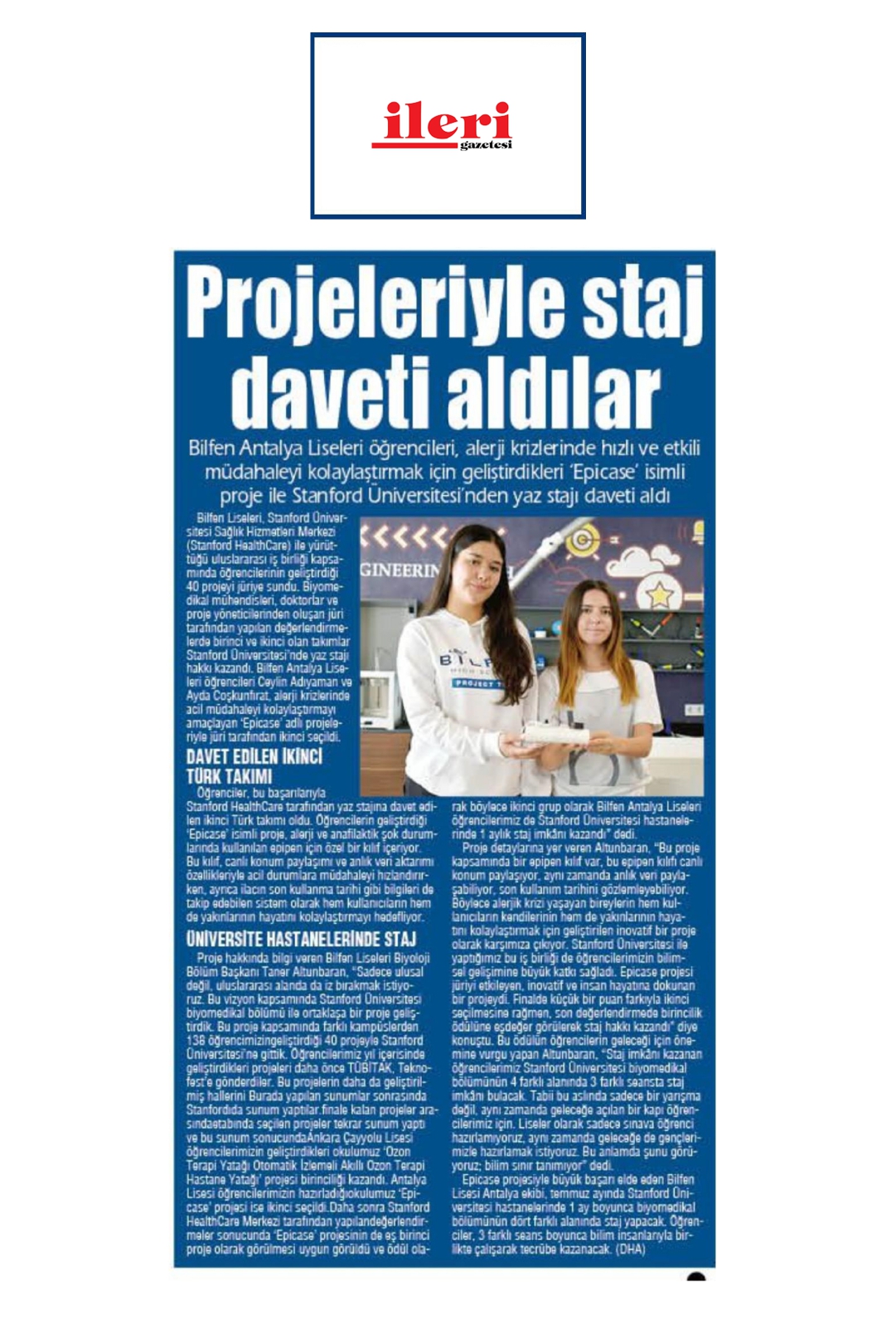Bilfen Antalya Liseleri Öğrencileri, Stanford Yolcusu!