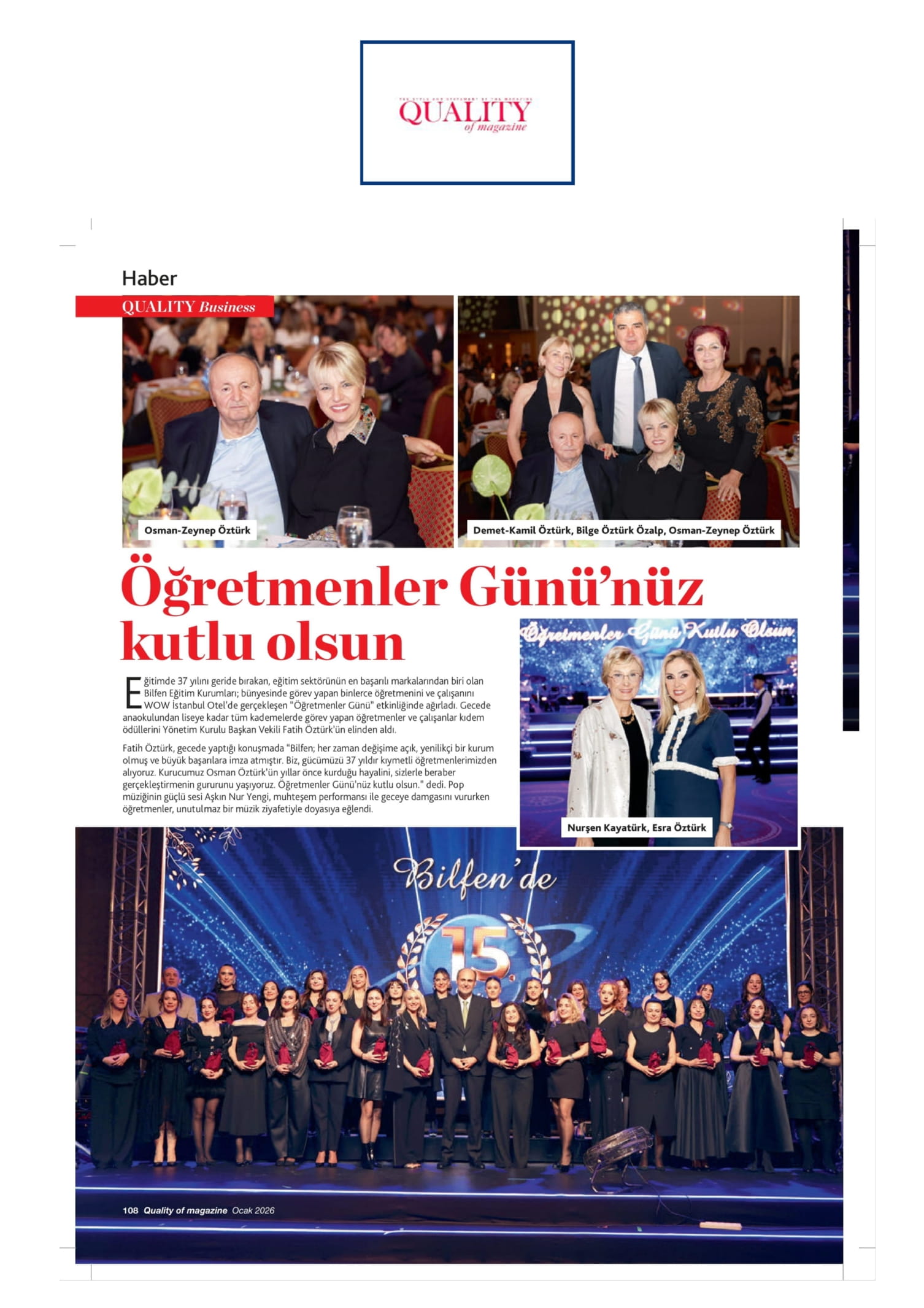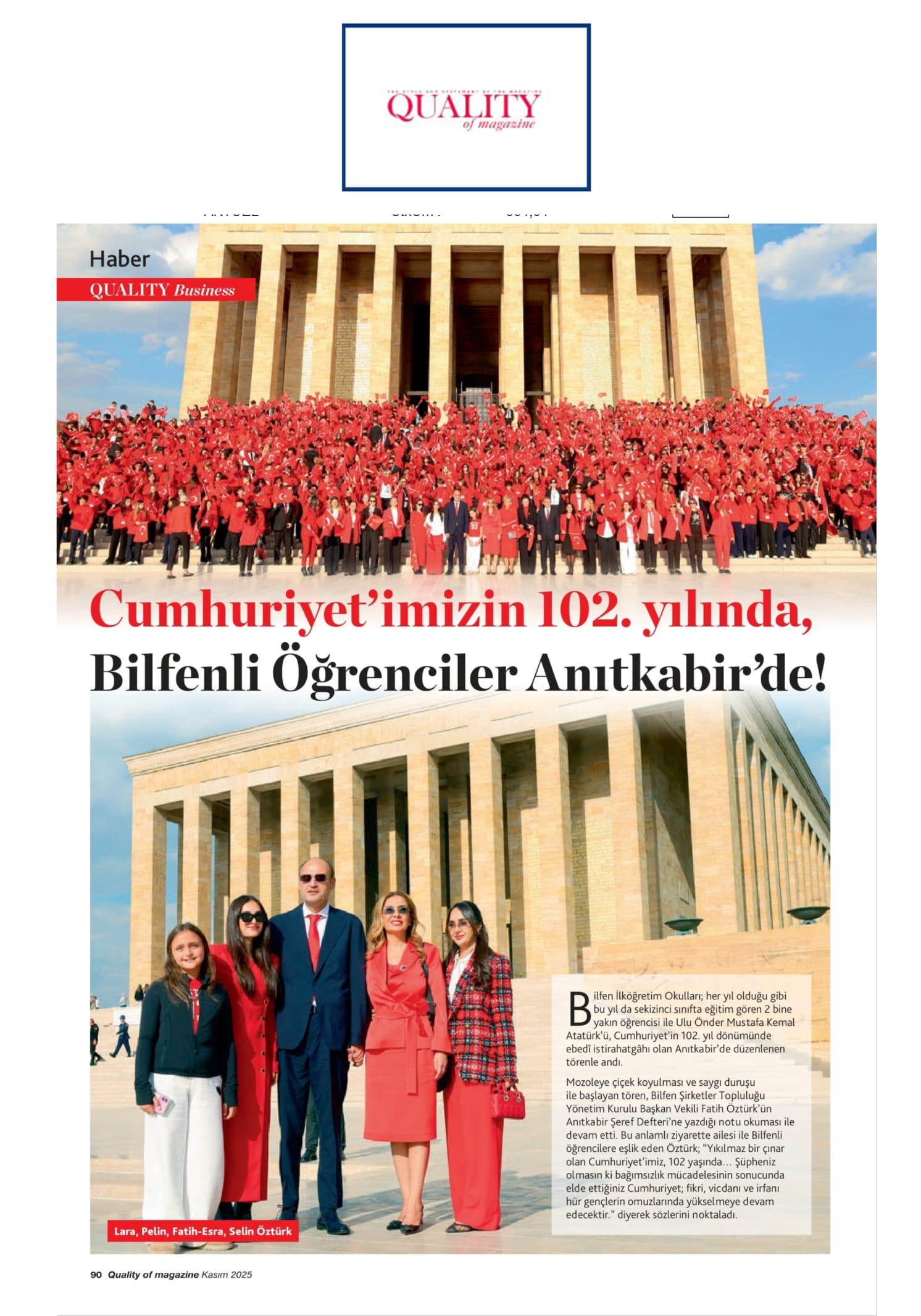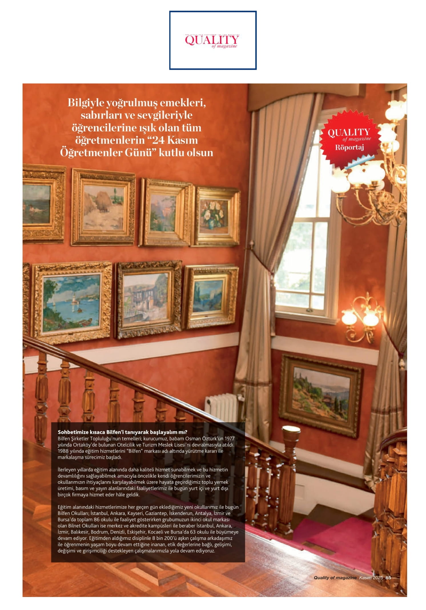 Bilfen Şirketler Grubu Başkan Vekili Fatih Öztürk Eğitime Verdiği Önemi Quality'a Anlattı