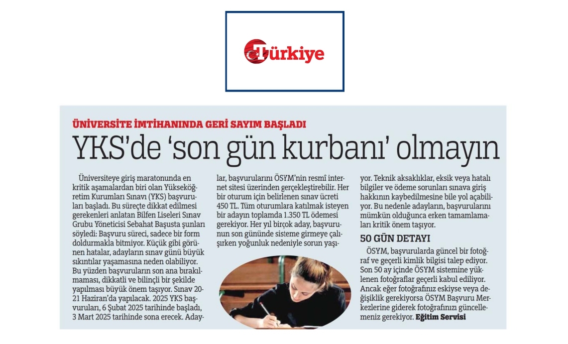 Bilfen Liseleri Sınav Grubu Yöneticisi Sebahat BAŞUSTA'dan YKS Başvuru Dönemi Tüyoları