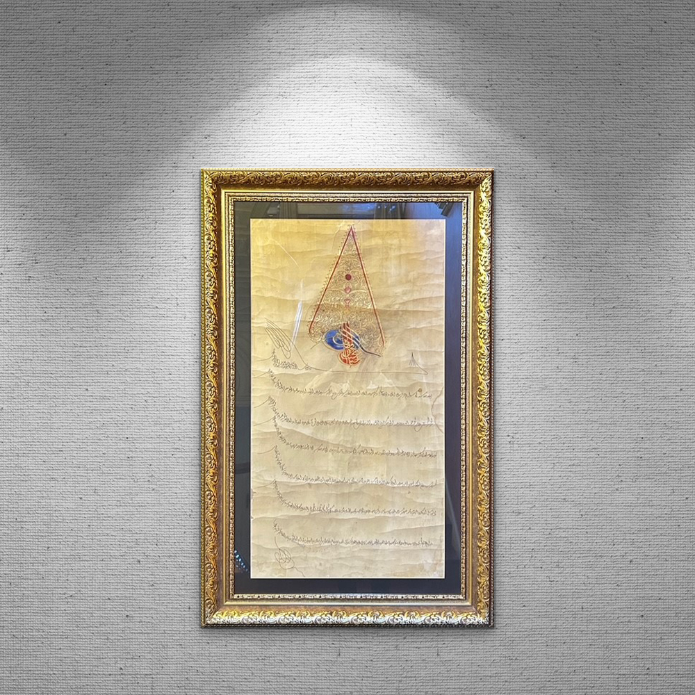 (1703-1730) III. Ahmet (Lale Devri Padişahı/Gazi)Ölçü:95 x 38 cmOsmanlı Fermanları eseriKoleksiyonun 40 Numaralı Eseri