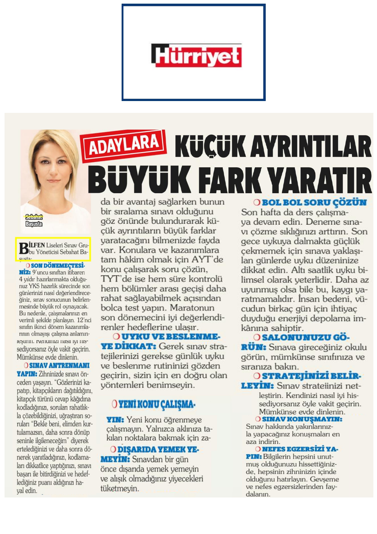 YKS Preference Period Tips from Bilfen High Schools Exam Group Manager Sebahat BAŞUSTA