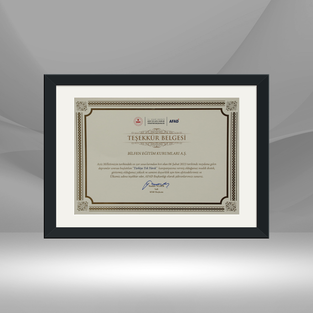 Art-Contact İstanbul – Bilfen Sanat Koleksiyonu Teşekkür Belgesi